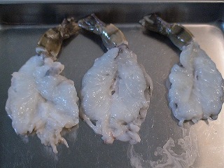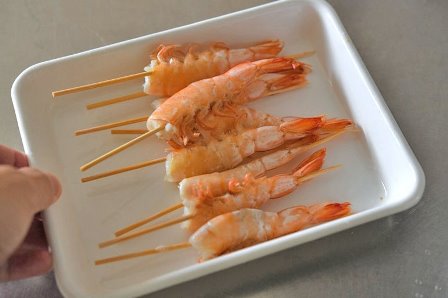 えびが丸まらないようにする下ごしらえ。