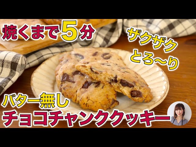 焼くまで5分!バターなし・ホットケーキミックスで超簡単!ザクザクチョコチャンククッキ。