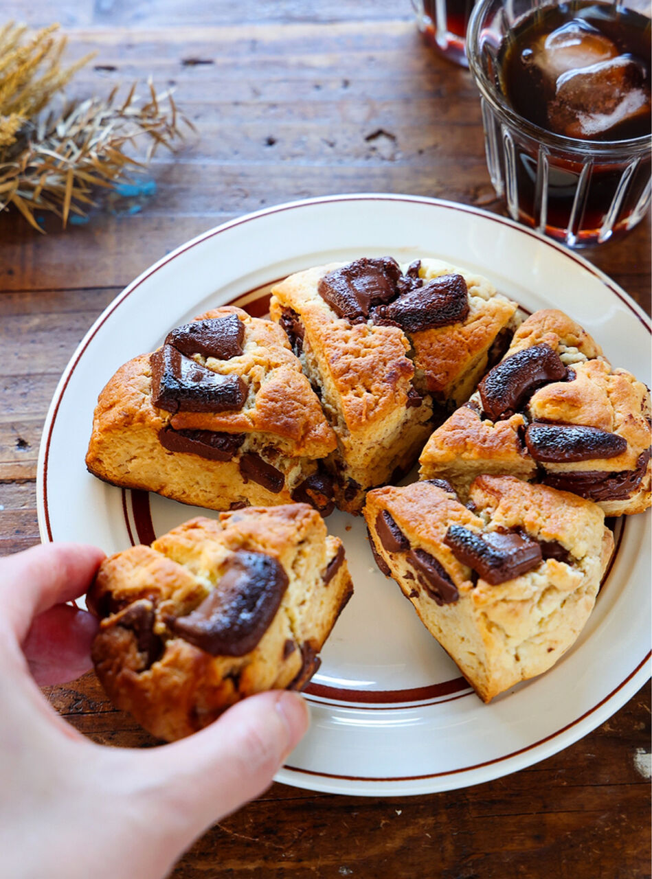 バター無し!簡単混ぜて焼くだけ「チョコチャンクスコーン」。