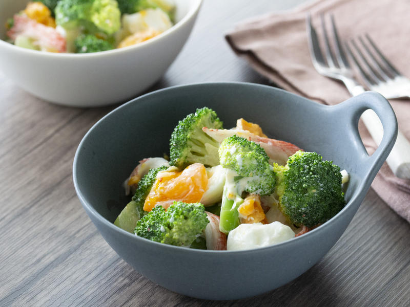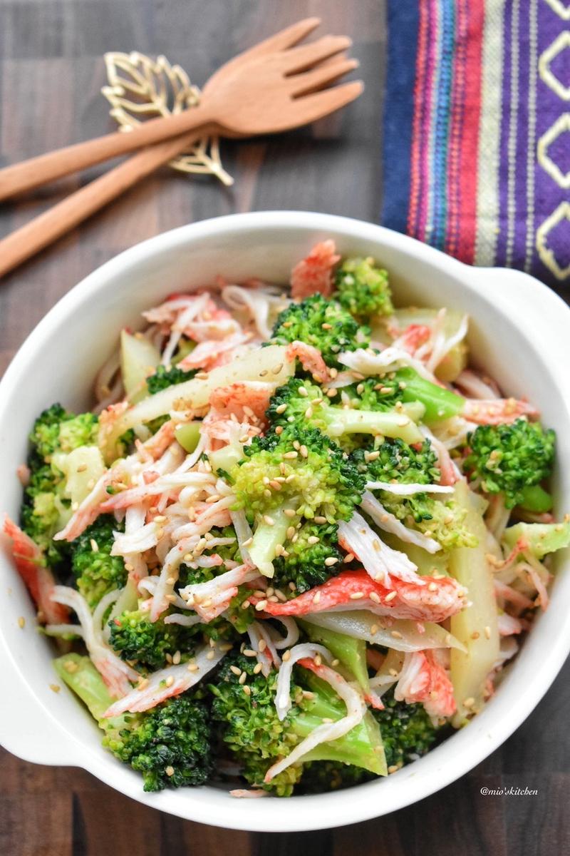 彩りきれい♪あと1品におすすめ「カニカマとブロッコリーのサラダ」フーディストノート。