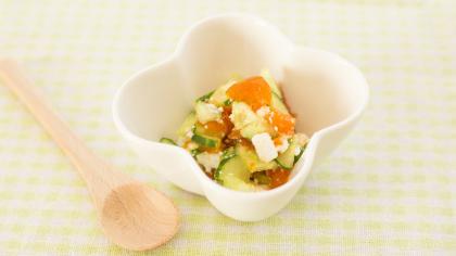 魚介を使った離乳食 完了期編~ツナときゅうりの和えサラダ~一般財団法人 日本educe食育総合研究所。