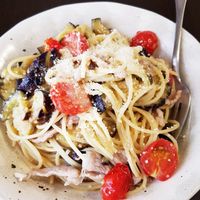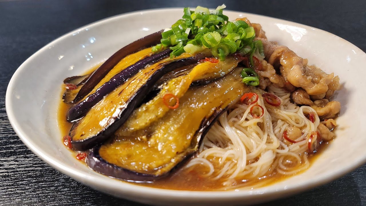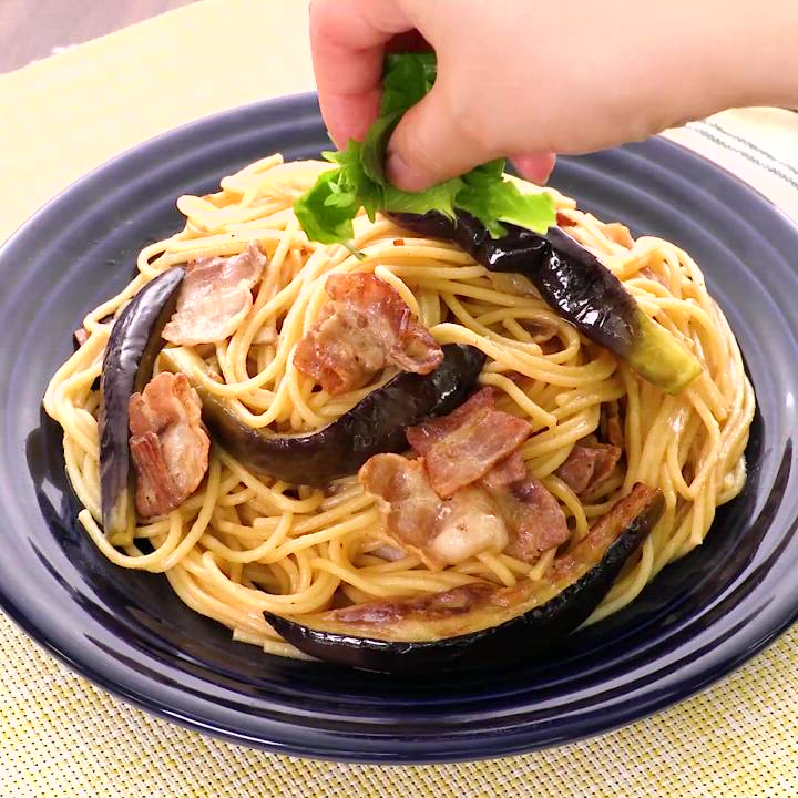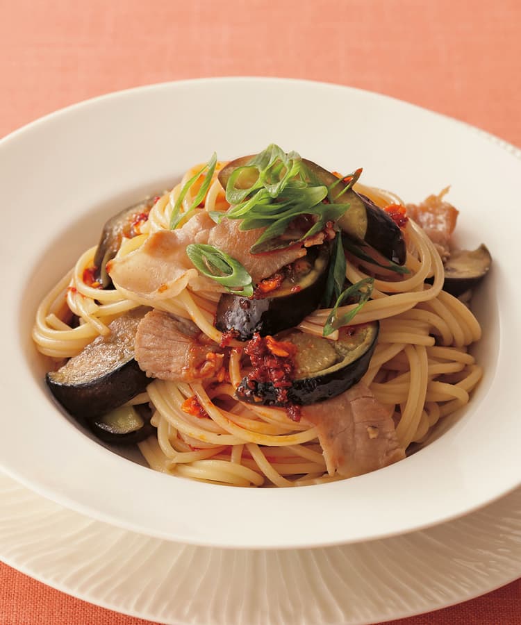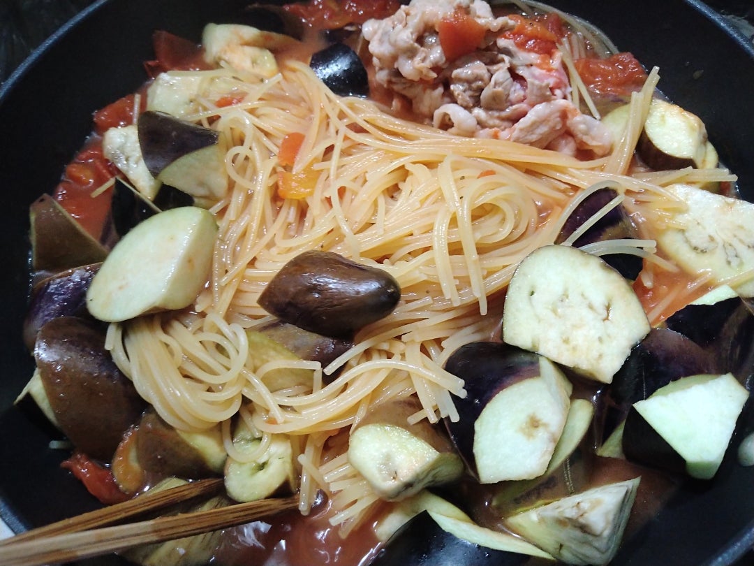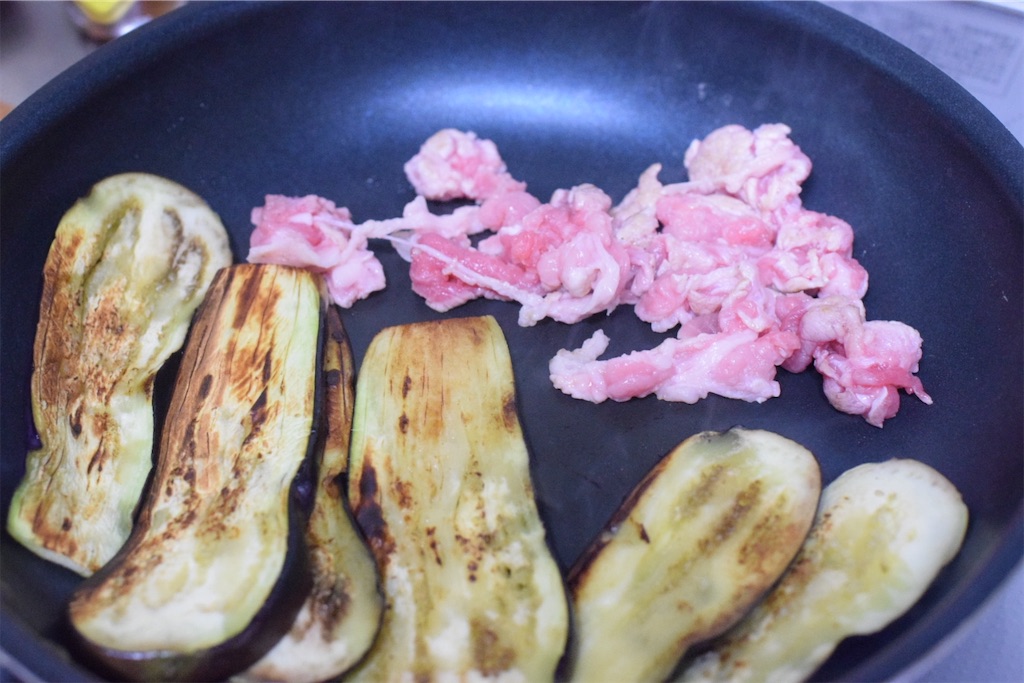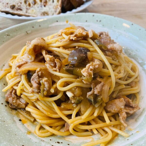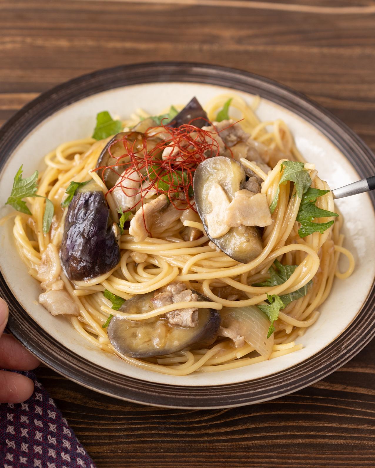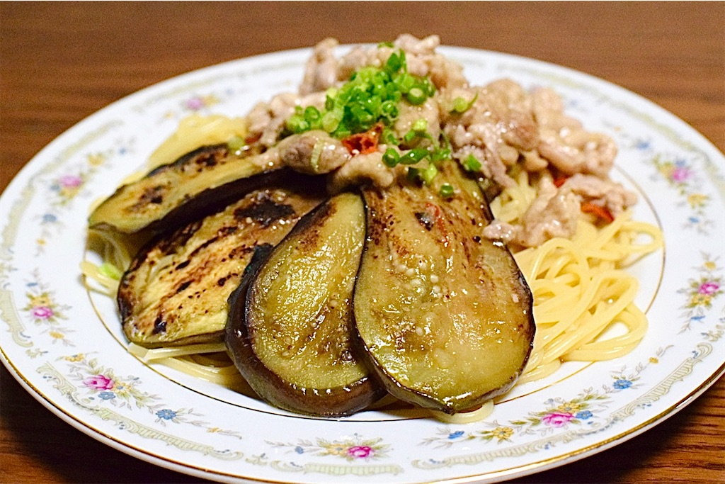 ワンパン 茄子と豚バラ肉の焼き浸しパスタクラシル。