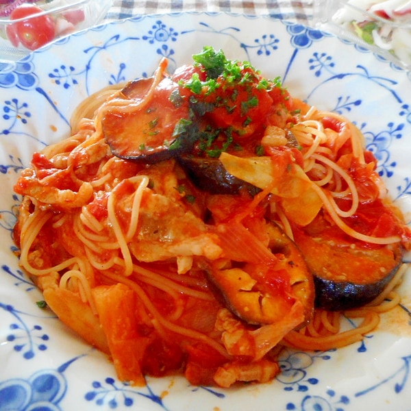 豚こまとなすのトマトパスタ - 顔が見える食品。