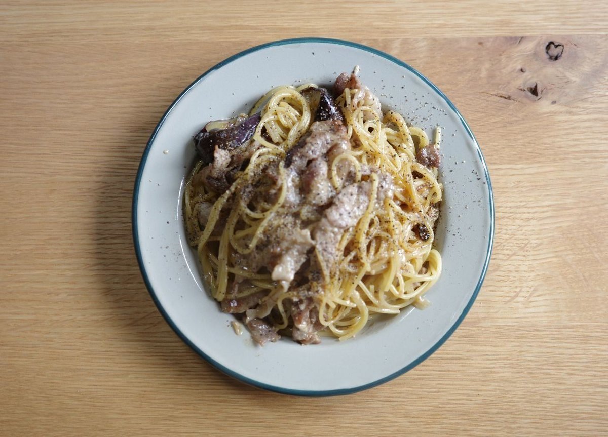 少しばかりうますぎたかも 豚こまとなすのバター醤油麹ワンパンパスタたなそうフードライタ。