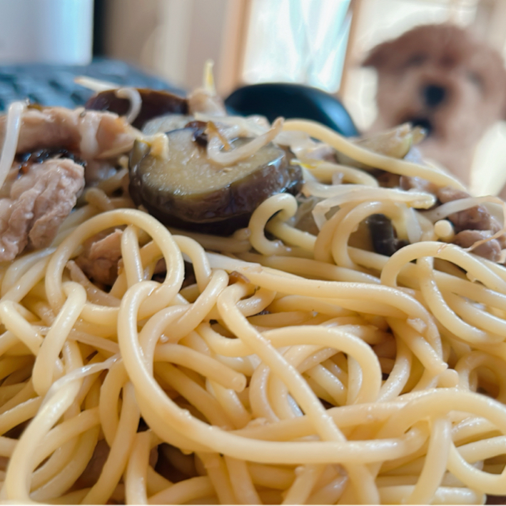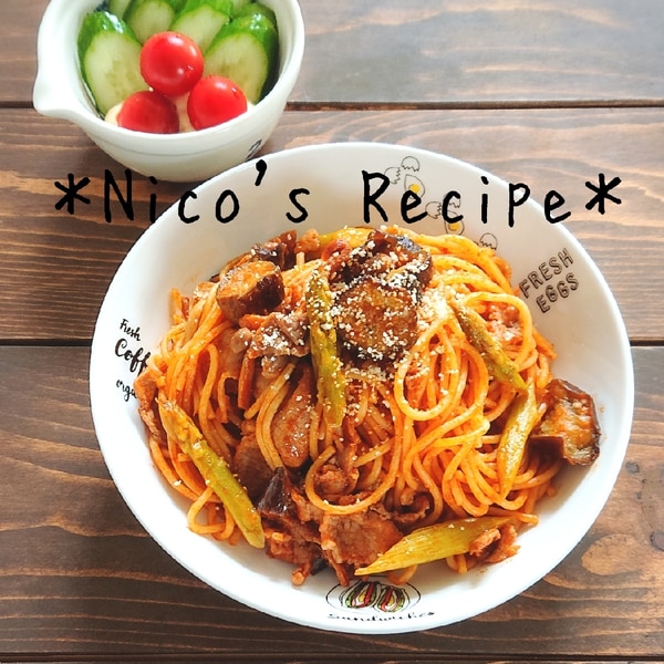 麺つゆが決め手★茄子と豚小間のナポリタン。
