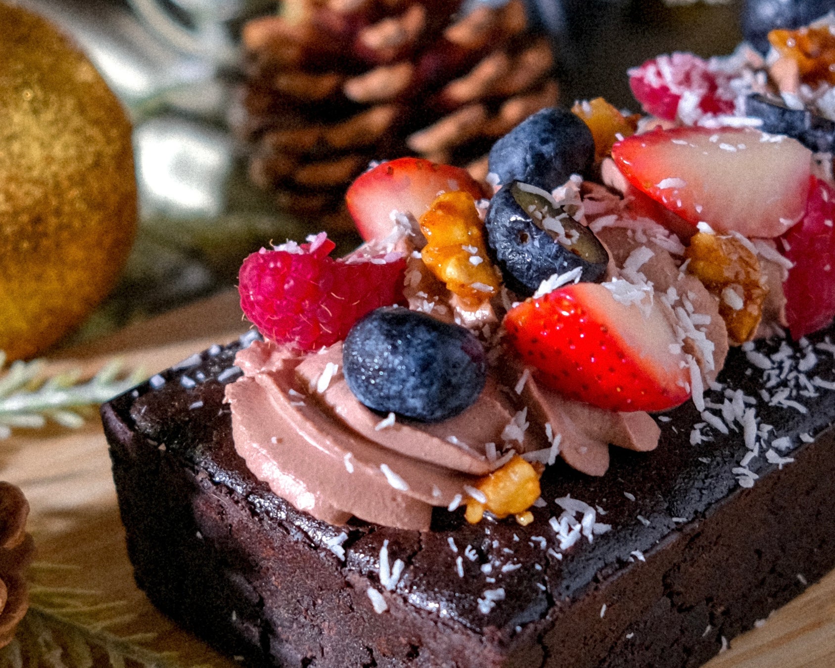今年のクリスマスはTHE_Bからちょっと大人なヴィーガン&グルテンフリー『ガトーショコラ』をお届け!ベリーやナッツをトッピングした色鮮やかでクリスマス感あふれる可愛らしいデザインにも注目!株式会社エスモードアートのプレスリリース。