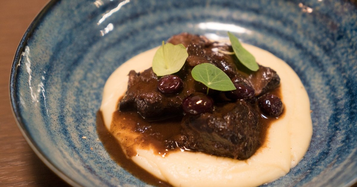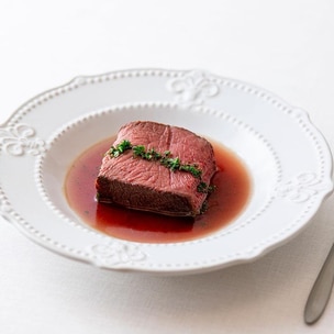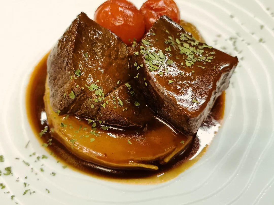 鹿肉の赤ワイン煮込み八丁みそ仕立て。
