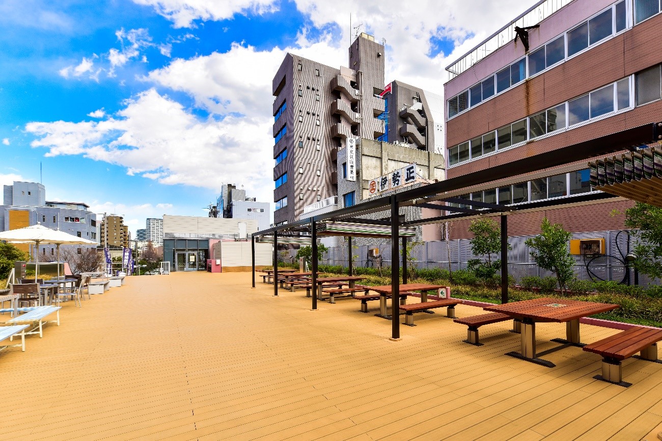 築地魚河岸 浜焼きBBQテラス:築地場外市場で買った新鮮食材を持ち込みできる屋上BBQテラス。