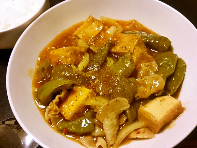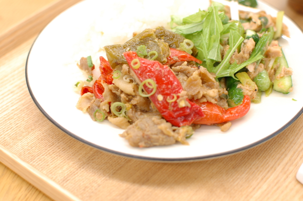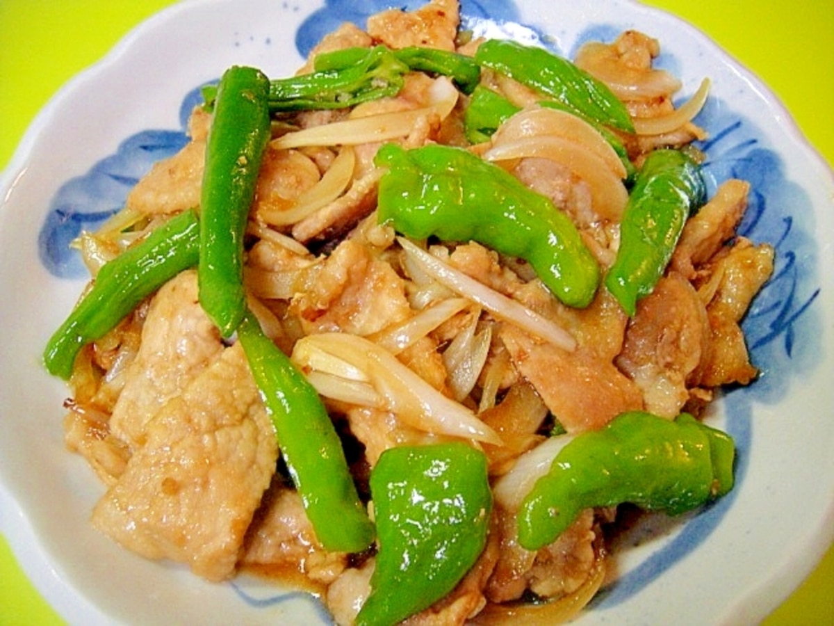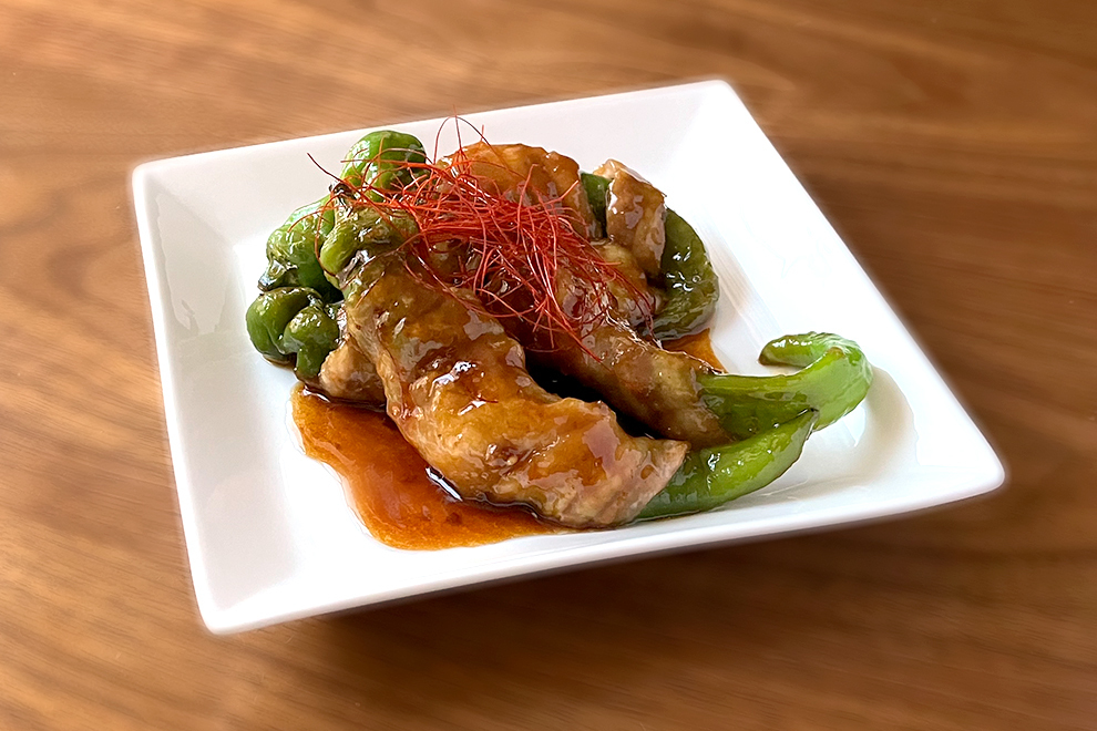 豚肉と万願寺唐辛子の甘辛生姜炒め。