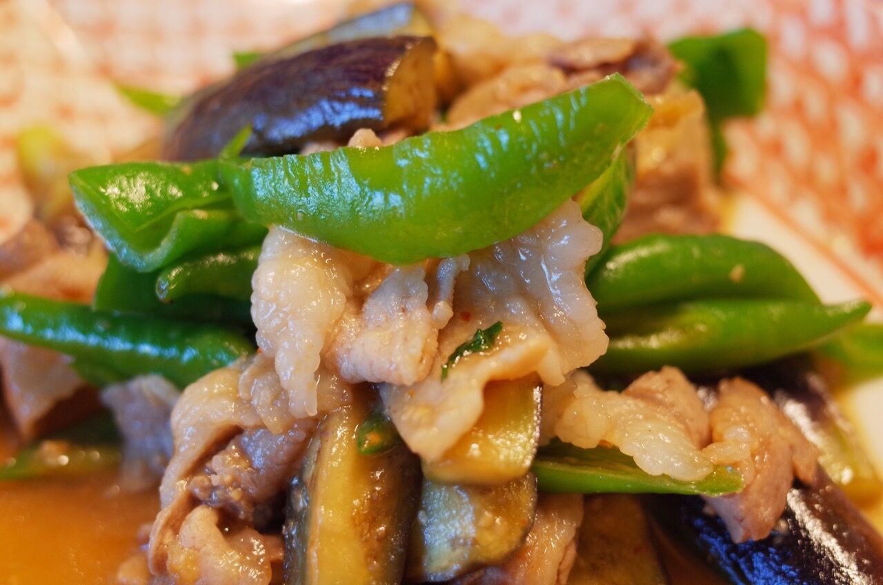 茄子と豚肉万願寺唐辛子の味噌炒め。