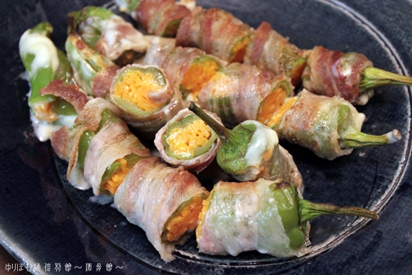 KOZレシピ 万願寺とうがらしのチーズ肉巻きKOZブログ。
