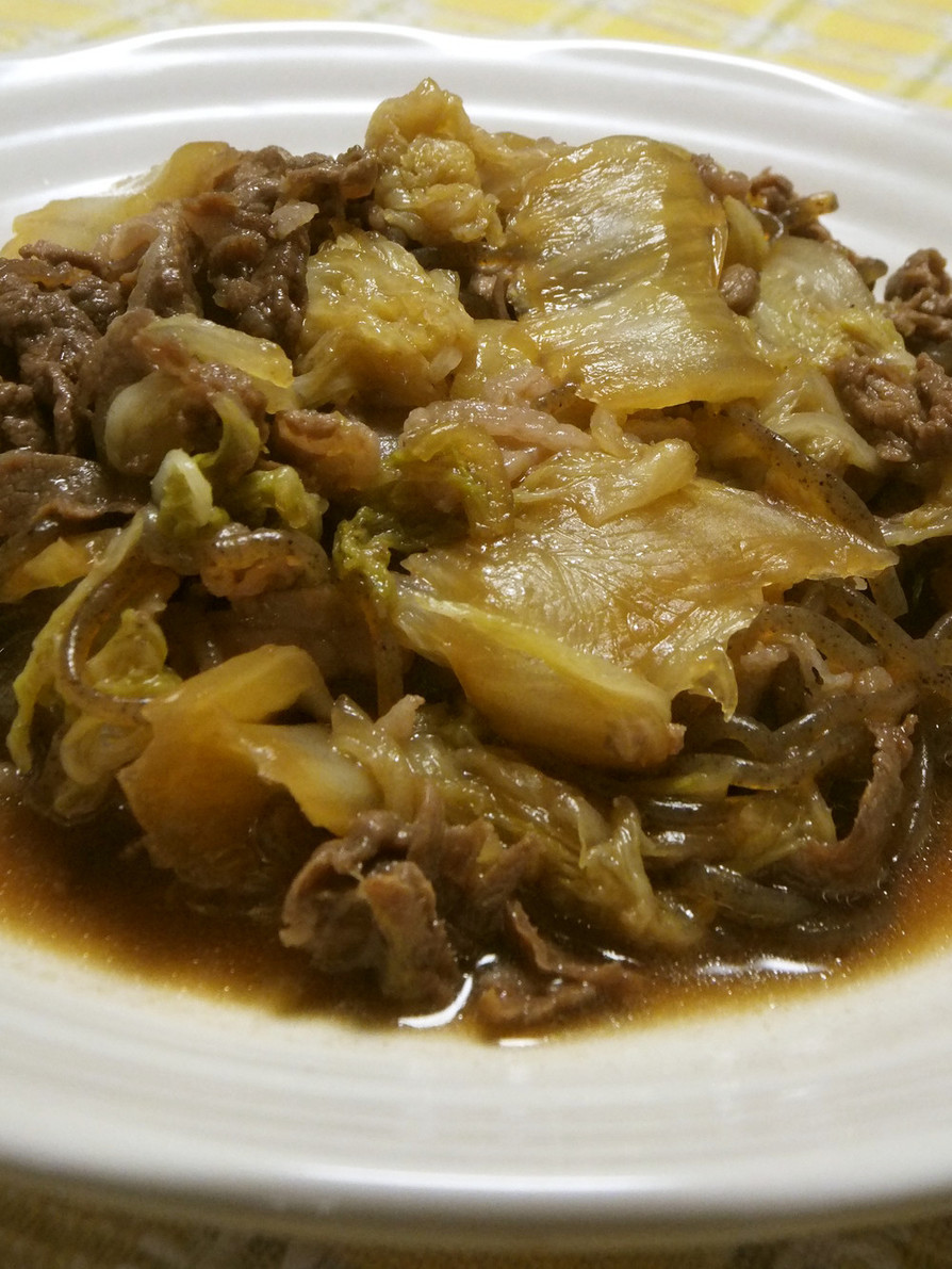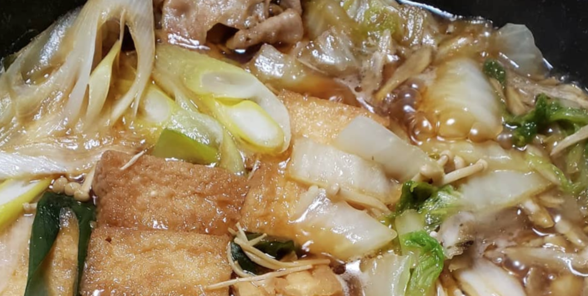 ワンパン 一人すき焼き 材料3つ牛肉切り落とし牛こま切れ自炊応援。