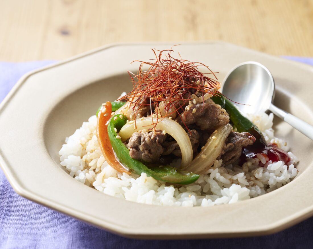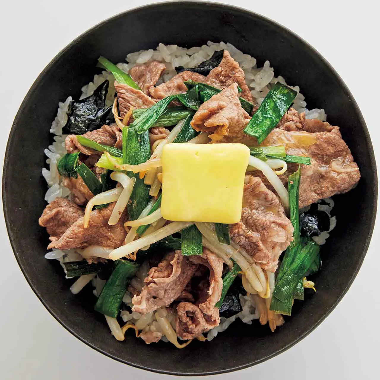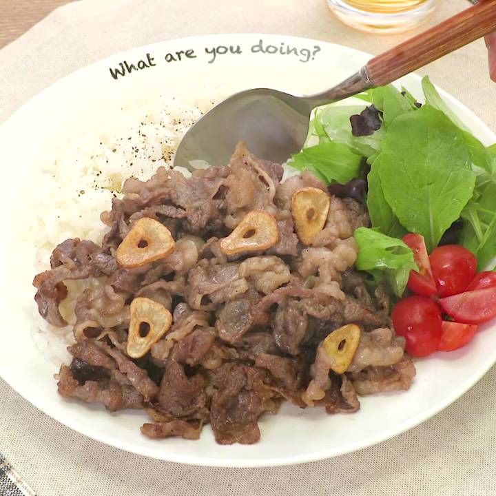 一口食べたら止まらない♪ 牛肉のガリバタ丼。