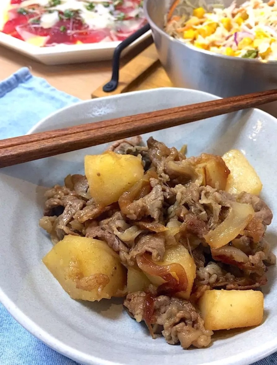 ご飯のお供に じゃがいもと牛肉のうま炒め。