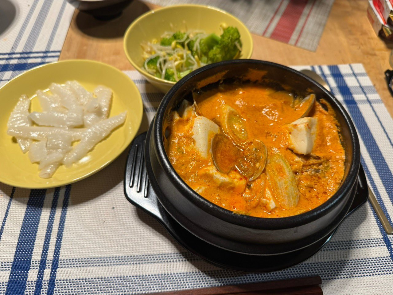 安藤☮直樹 Ando Naokion X: "ピンナ食堂@bichnasigdangさんの「スンドゥブチゲスープ」に豆乳を加えて、「豆乳スンドゥブ チゲ」を作りました。口当たりはマイルドで、後から若干の辛さを感じる「スンドゥブチゲ」。辛い料理があまり得意でないパートナーも喜んで食べ。