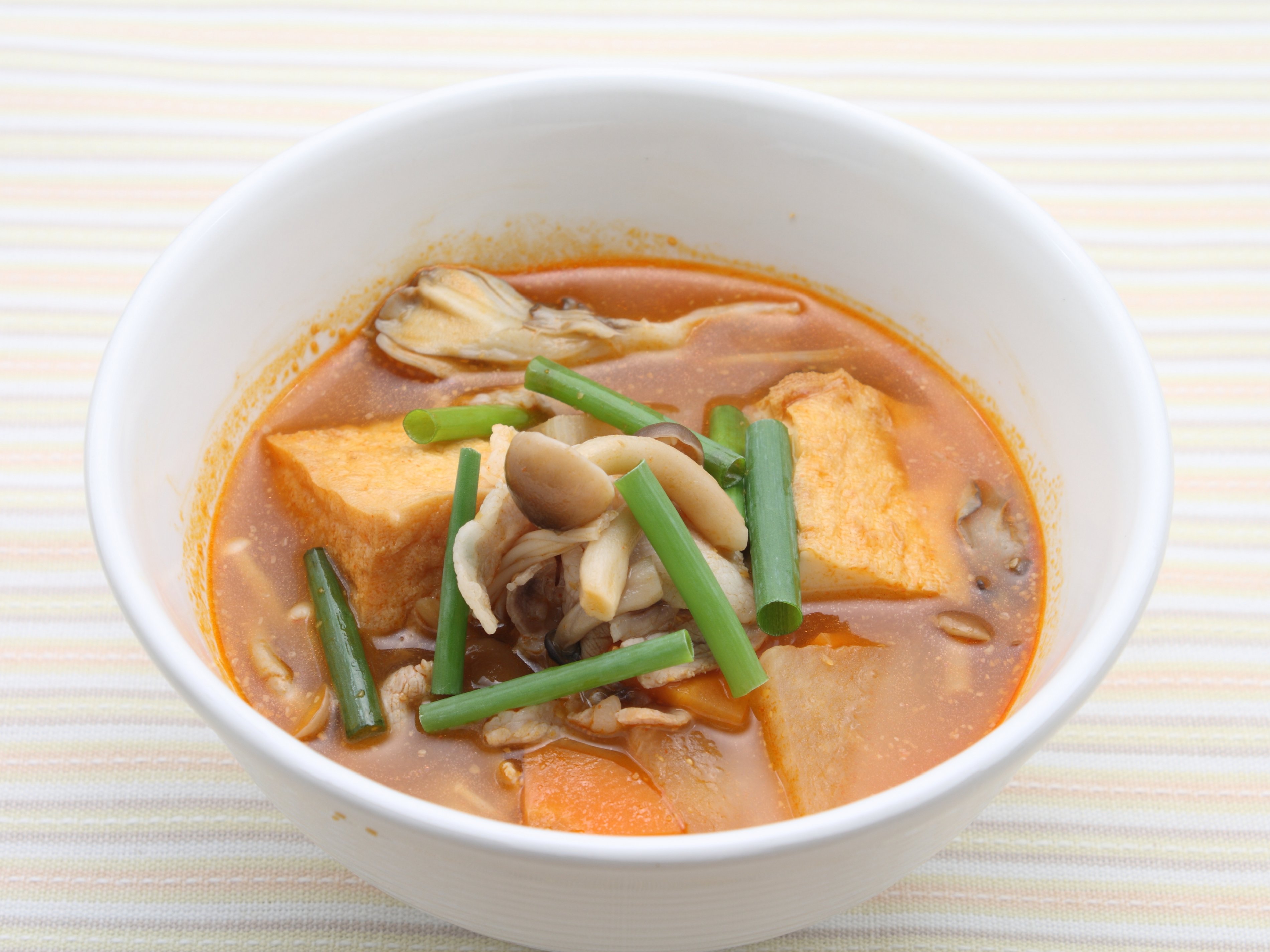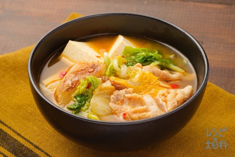 味噌入りでコクもアップ♪ 簡単キムチチゲスープ。