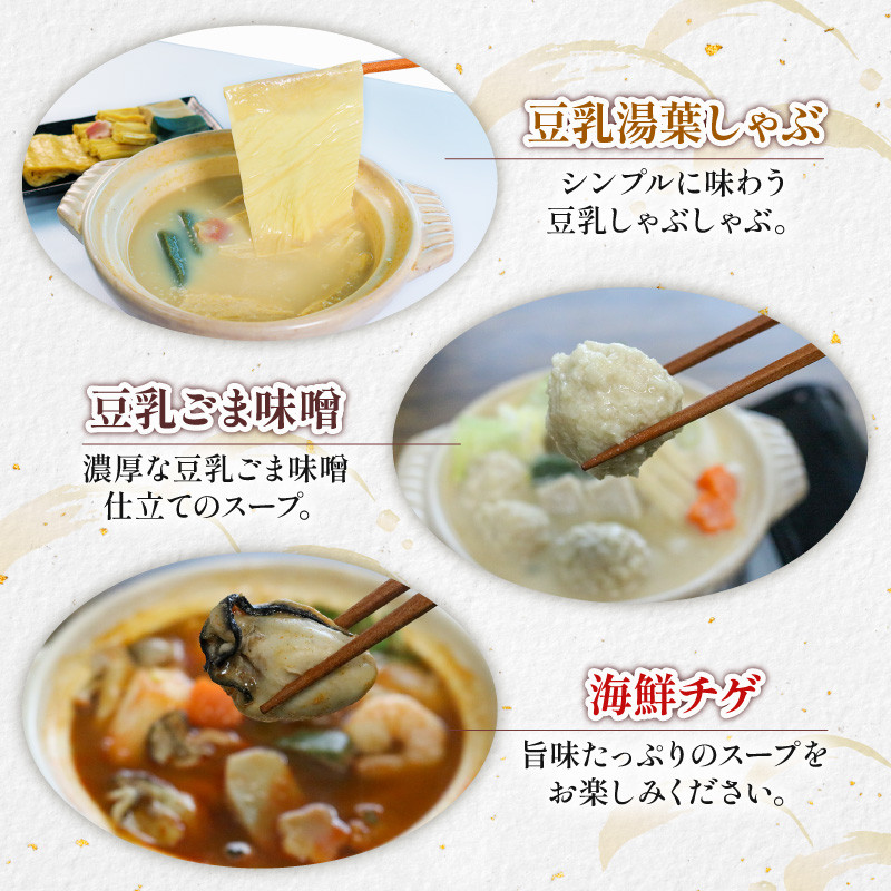ふるさと納税一人鍋 食べ比べセット 豆乳ごま味噌・海鮮チゲ・豆乳ゆばしゃぶ梅の花 豆乳 味噌 みそ ミソ 豆乳 ゴマ ごま 大豆 湯葉 出汁生麩 梅麩 ゆば しゃぶしゃぶ 牡蠣 カキ かき 海老 エビ えび 海鮮 海鮮鍋 チゲ鍋 チゲ 鍋 なべ スープ 井手町。