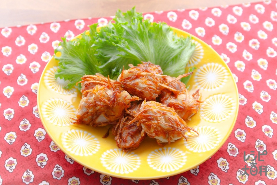 野菜の皮でパリパリ唐揚げの献立 副菜:餅のねぎごま塩あえ、汁物:丸鶏がらスープ餃子 献立・メニュー 味の素パーク たべる楽しさを、もっと。