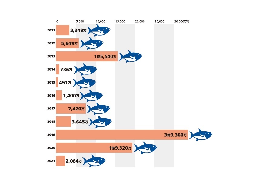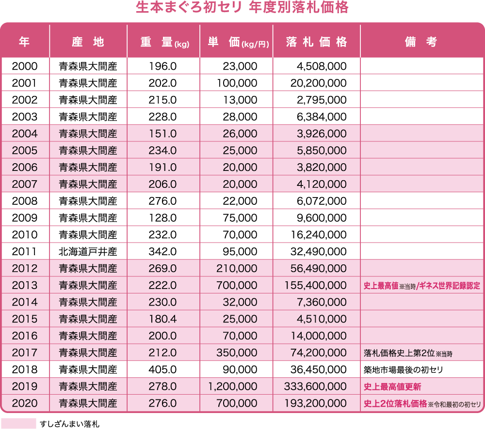 Infocalendar -マグロ初競り最高落札価格推移 築地市場│2019年からは豊洲市場ニッセイ基礎研究所。