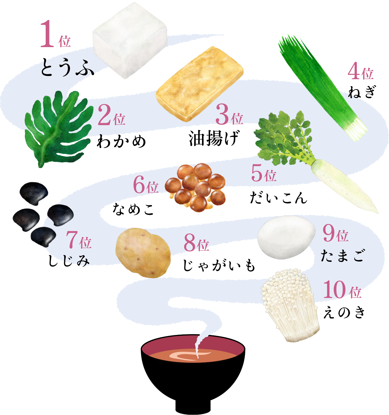 味噌汁人気具材ランキング -味噌汁のレシピ紹介や味噌のお役立ち情報 365日カンタン味噌汁レシピ。