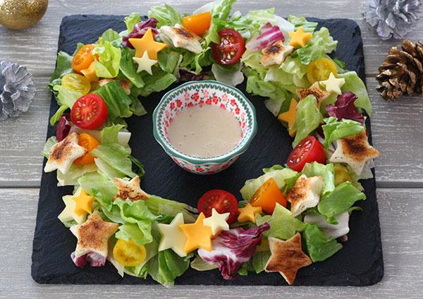 簡単クリスマスレシピ!リースサラダの作り方手作りドレッシングおいしい酢。