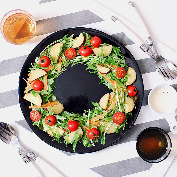 手軽で華やか!テーブルを素敵に演出する、クリスマスにぴったりなリースサラダおうちごはん。