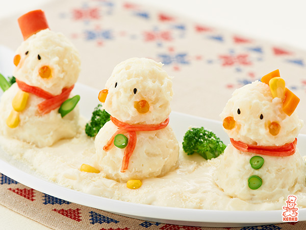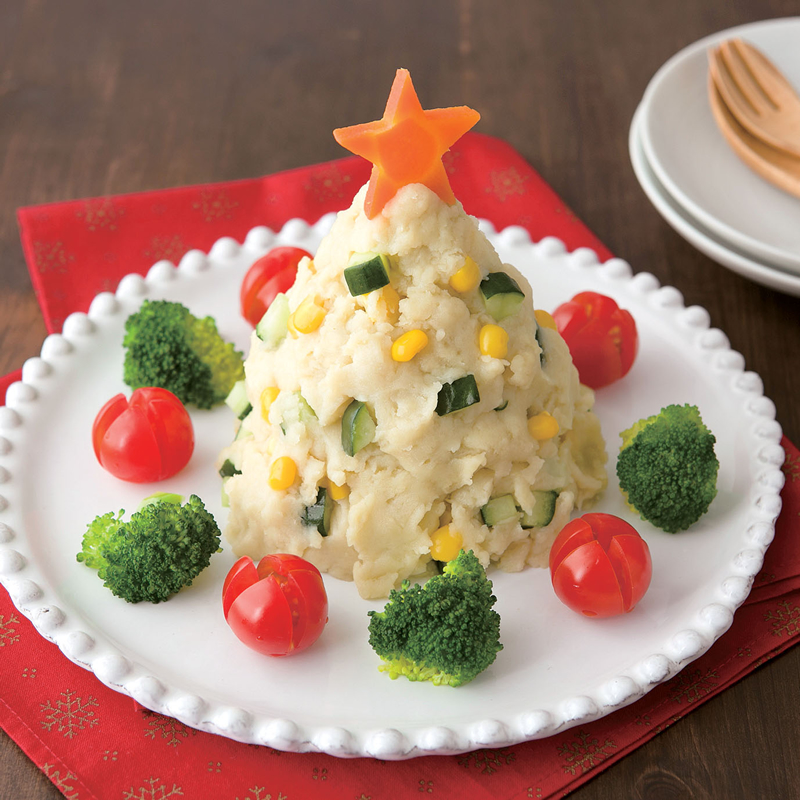 惣菜のポテトサラダで簡単!2色のクリスマスツリーサラダカゴメ株式会社。