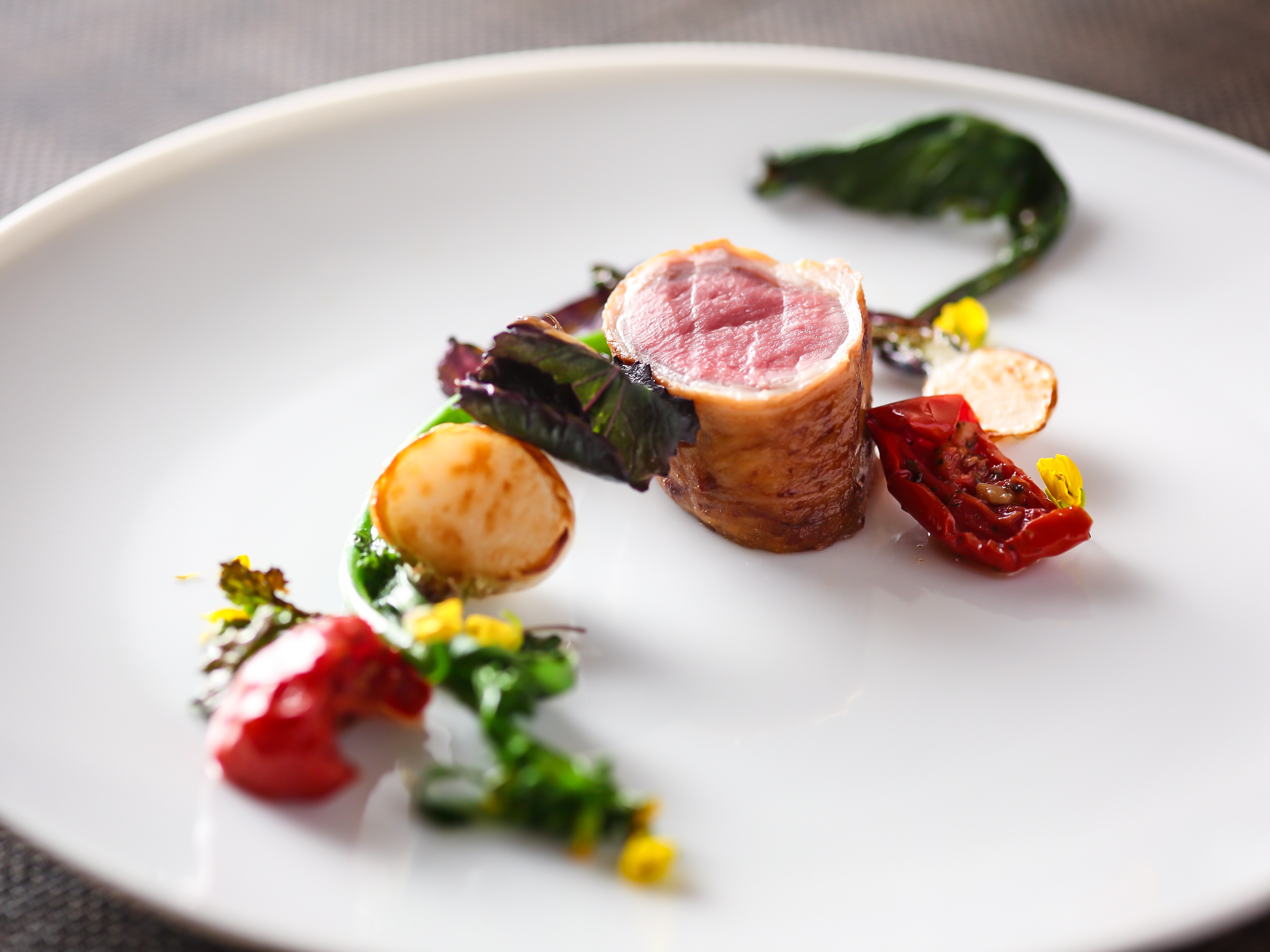 ローストビーフのリース風サラダ&クリスマスチーズショートケーキ。