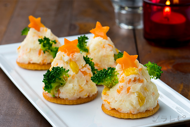 サラダスティックのクリスマス・ポテサラ・ツリー - レシピ集一正蒲鉾株式会社。