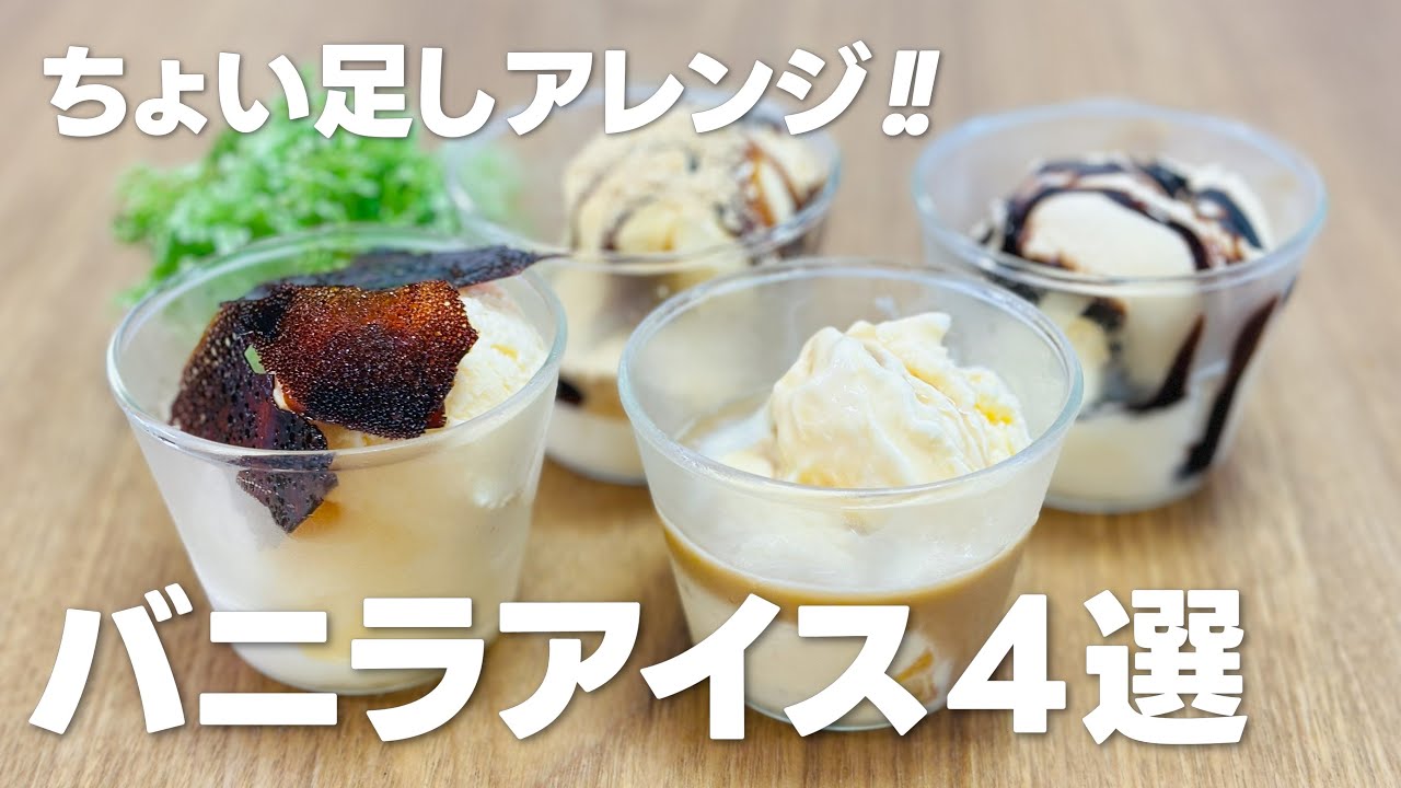 バニラアイスアレンジ4選!!簡単お菓子作りレシピ - YouTube。
