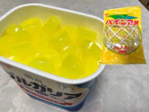 ヨーグルトの中にパインアメを8粒入れるとどんな味に変わるか検証してみたら。