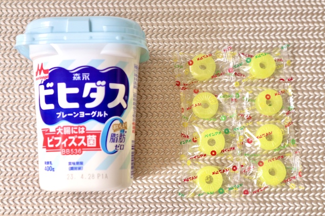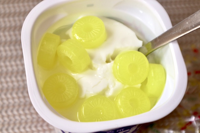 パインアメ公式アレンジ、ヨーグルトにパインアメいれるだけで激ウマヨーグルトにする方法。