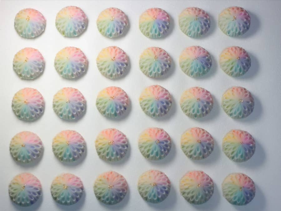 和菓子職人 土屋 タダヒロ on X: "-花火-はなび- ⠀ 日本の夏の風物詩である花火です。包みぼかしという技法を使用して作り、一つの練り切りに6種の色彩を使用した鮮やかな花火らしい花火です。 例年ならそろそろ花火大会がある時期ですが今年も中止。せめて練り切りで。