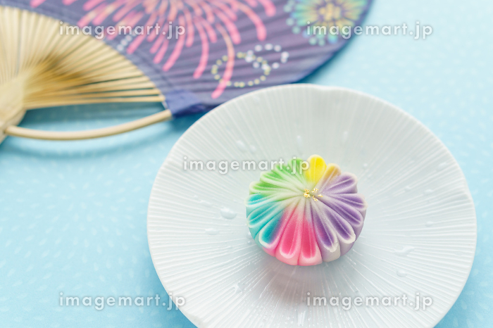 季節の和菓子「花火」とうちわの写真素材256770640- イメージマート。
