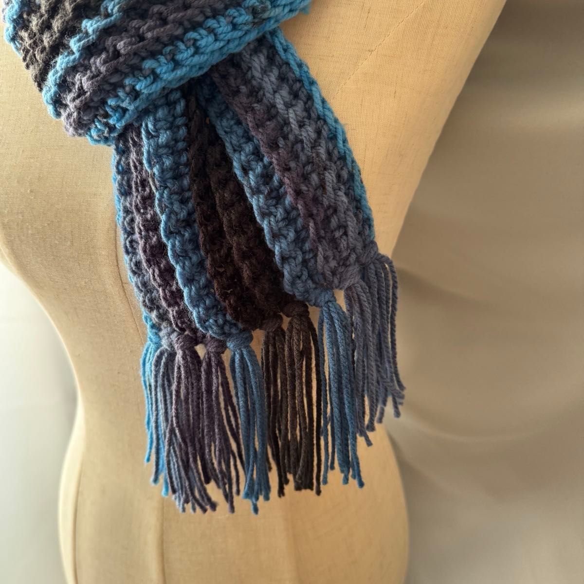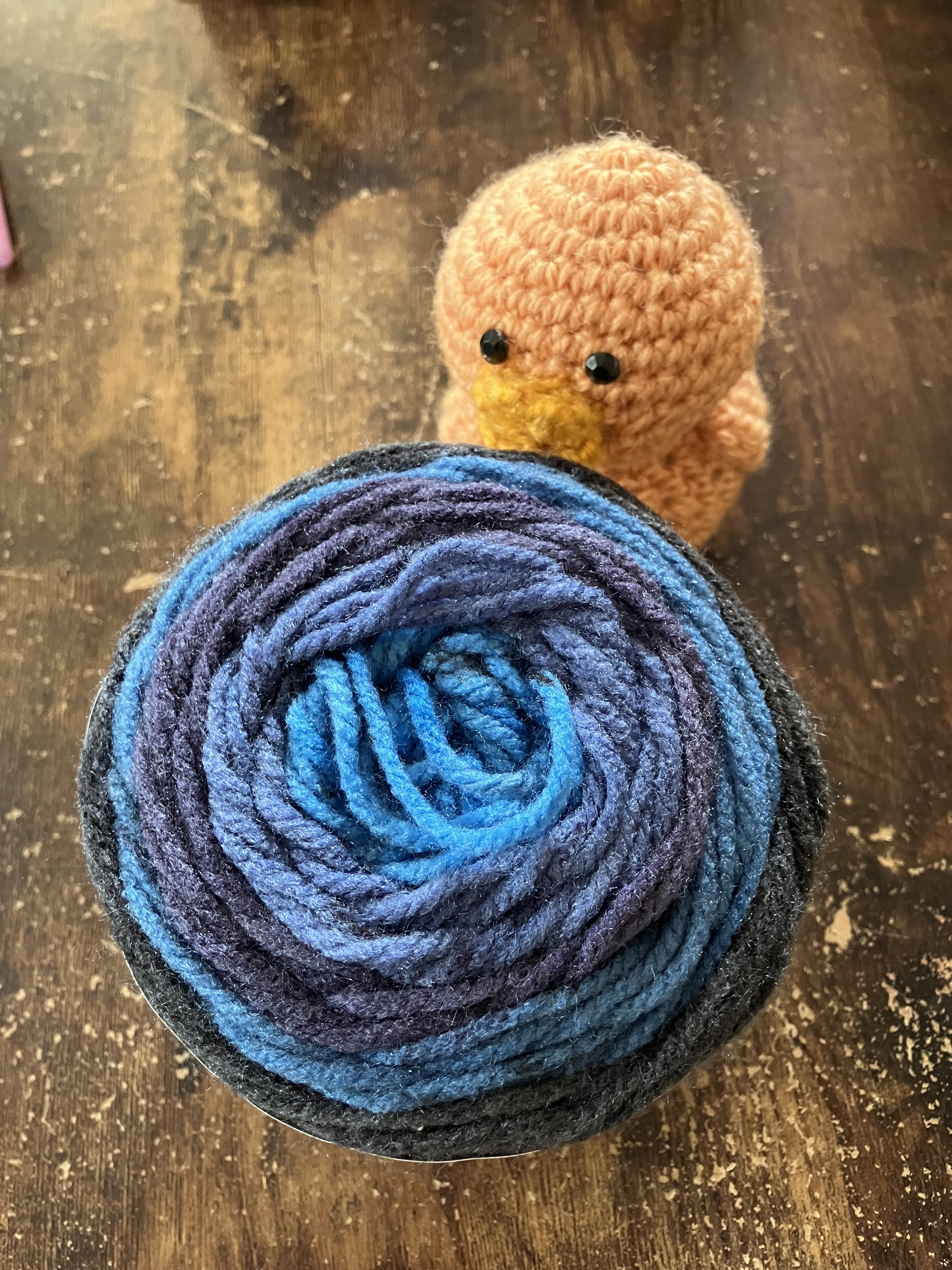 ダイソー毛糸パティシエミッドナイト2玉セット ブルーグラデーション。