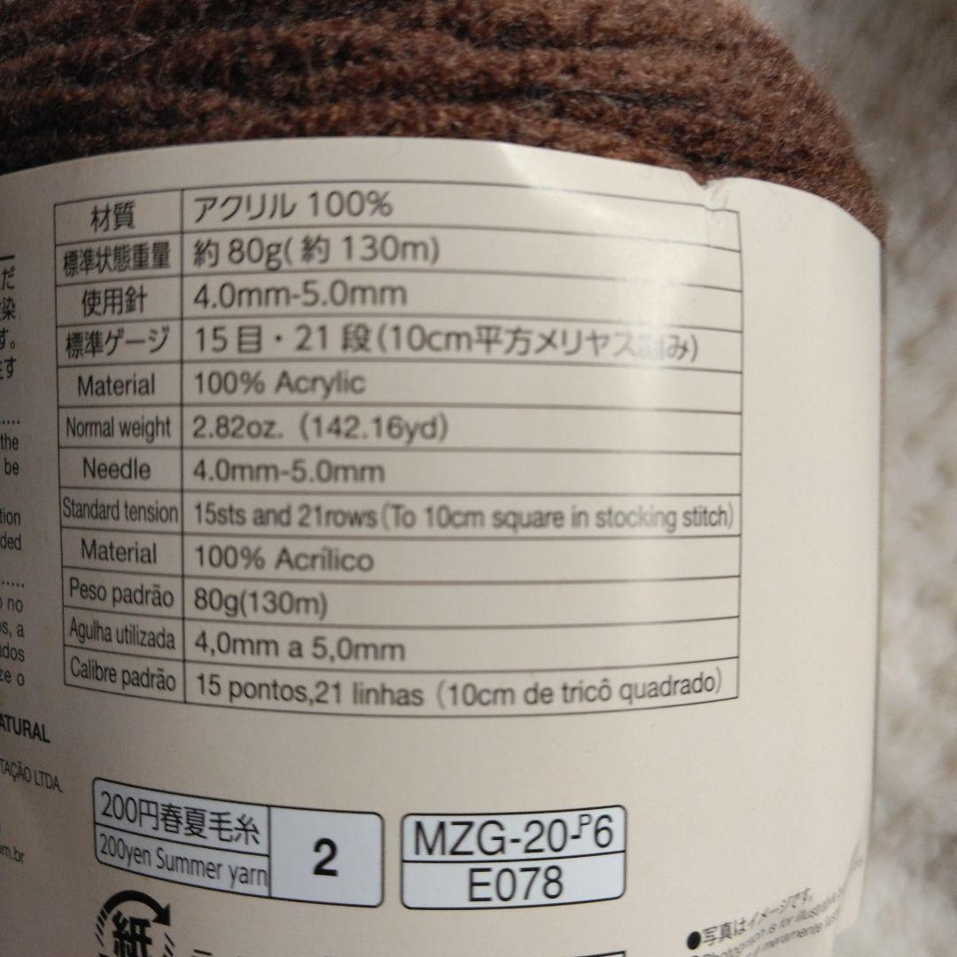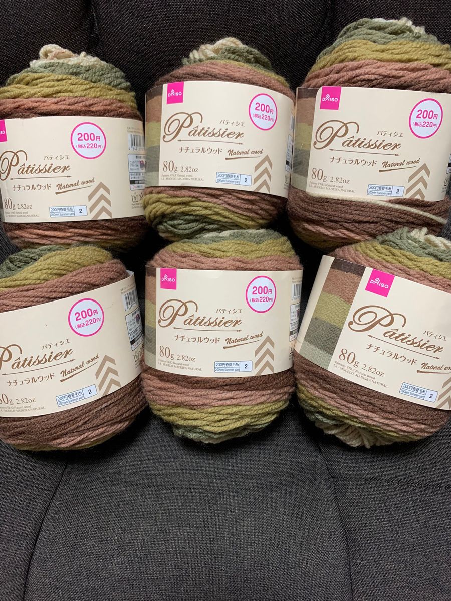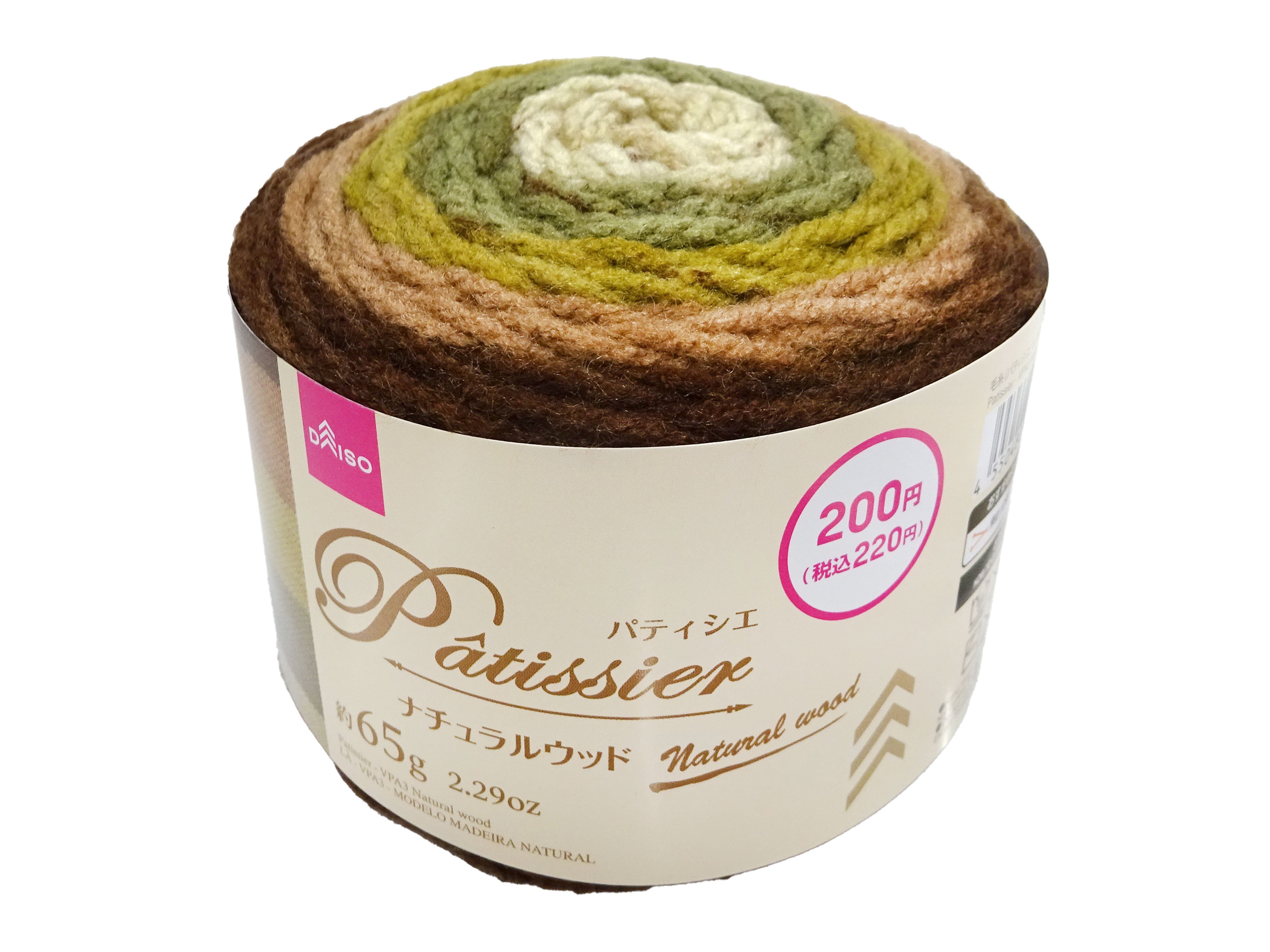 ダイソー毛糸: 200円毛糸パティシエナチュラルウッド6玉。