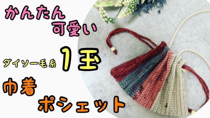 200円毛糸 ダイソーパティシエ1玉で作る巾着ポシェット。