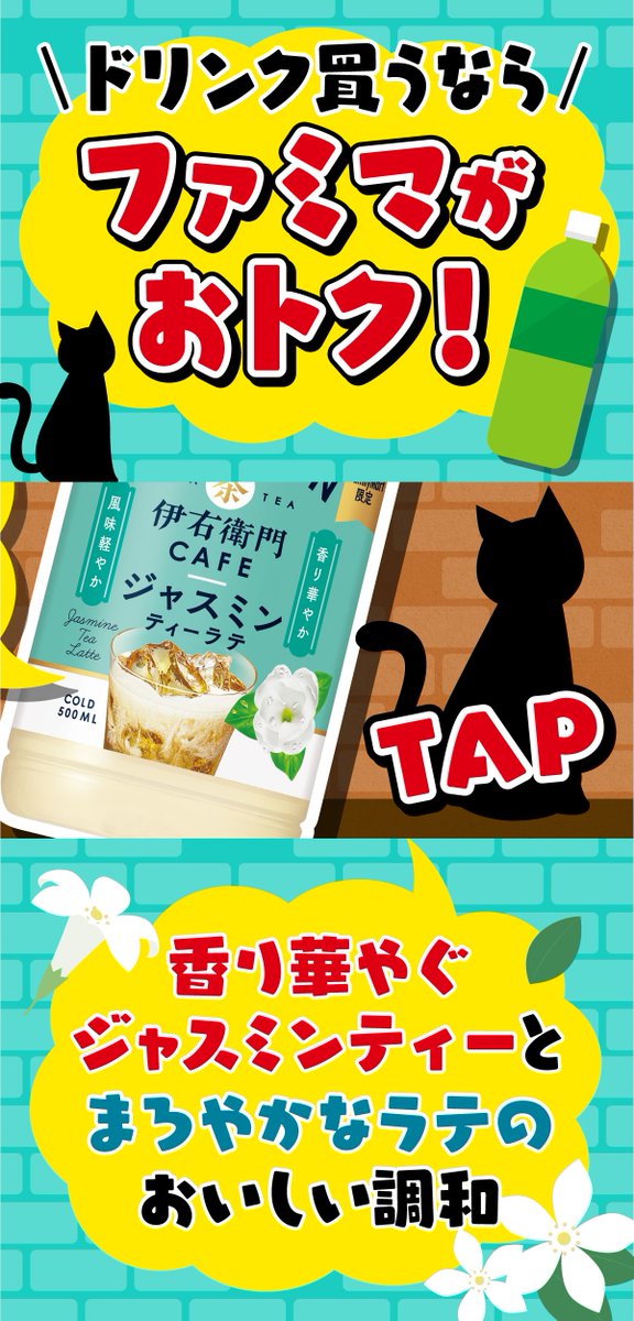 今、ファミマで伊右衛門買うとおトク ファミマ伊右衛門ジャスミンティーティーラテ1個買うと1個もらえるTikTok。