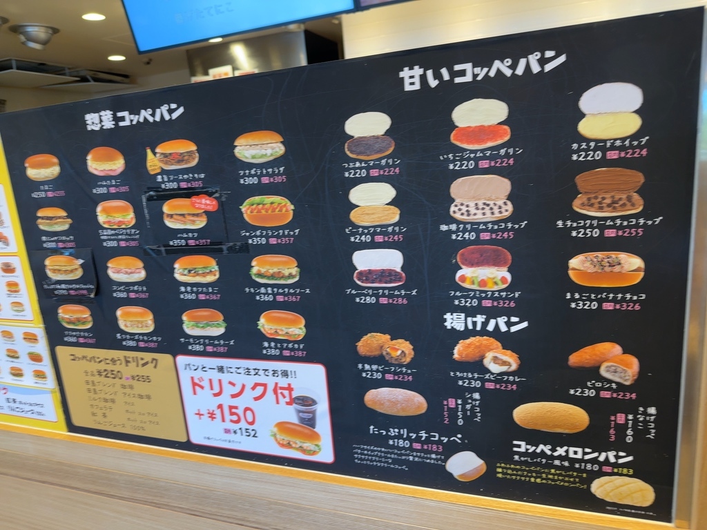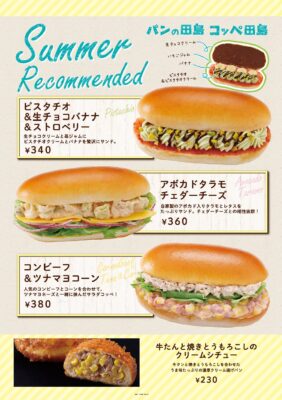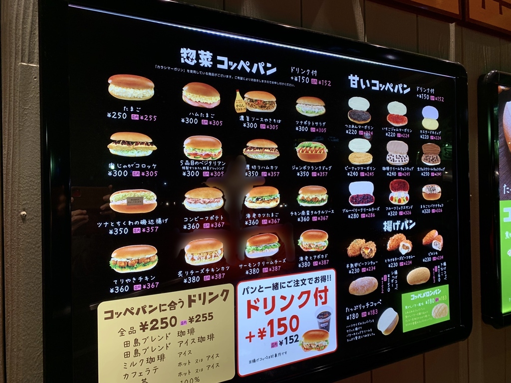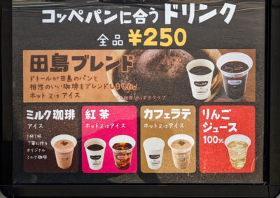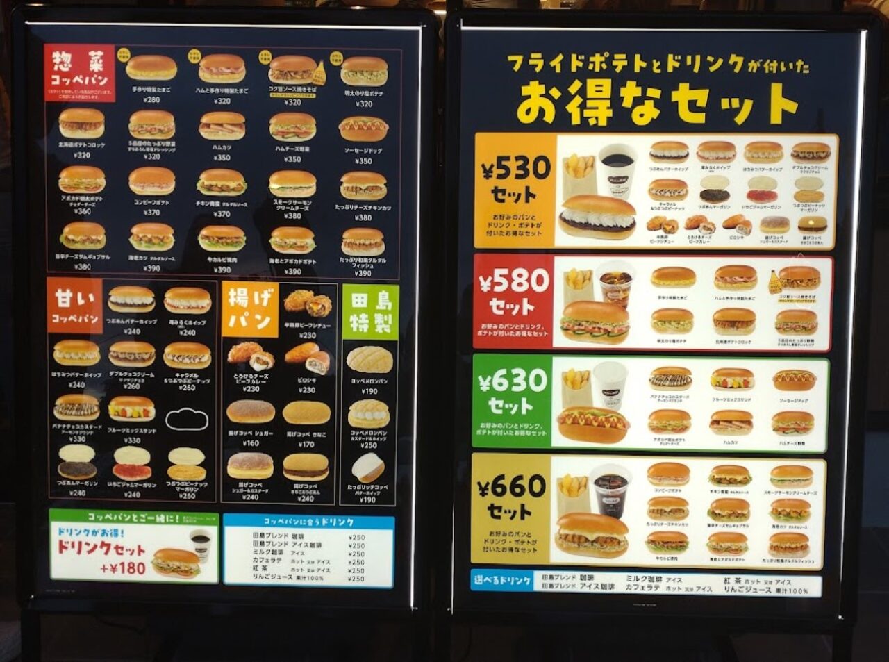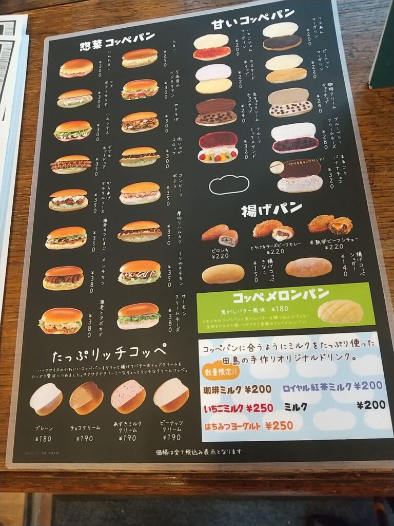 パンの田島・コッペ田島 メニュー表 2023年最新版 コッペパン・ドリンク・セット星乃珈琲だいすきクラブ。