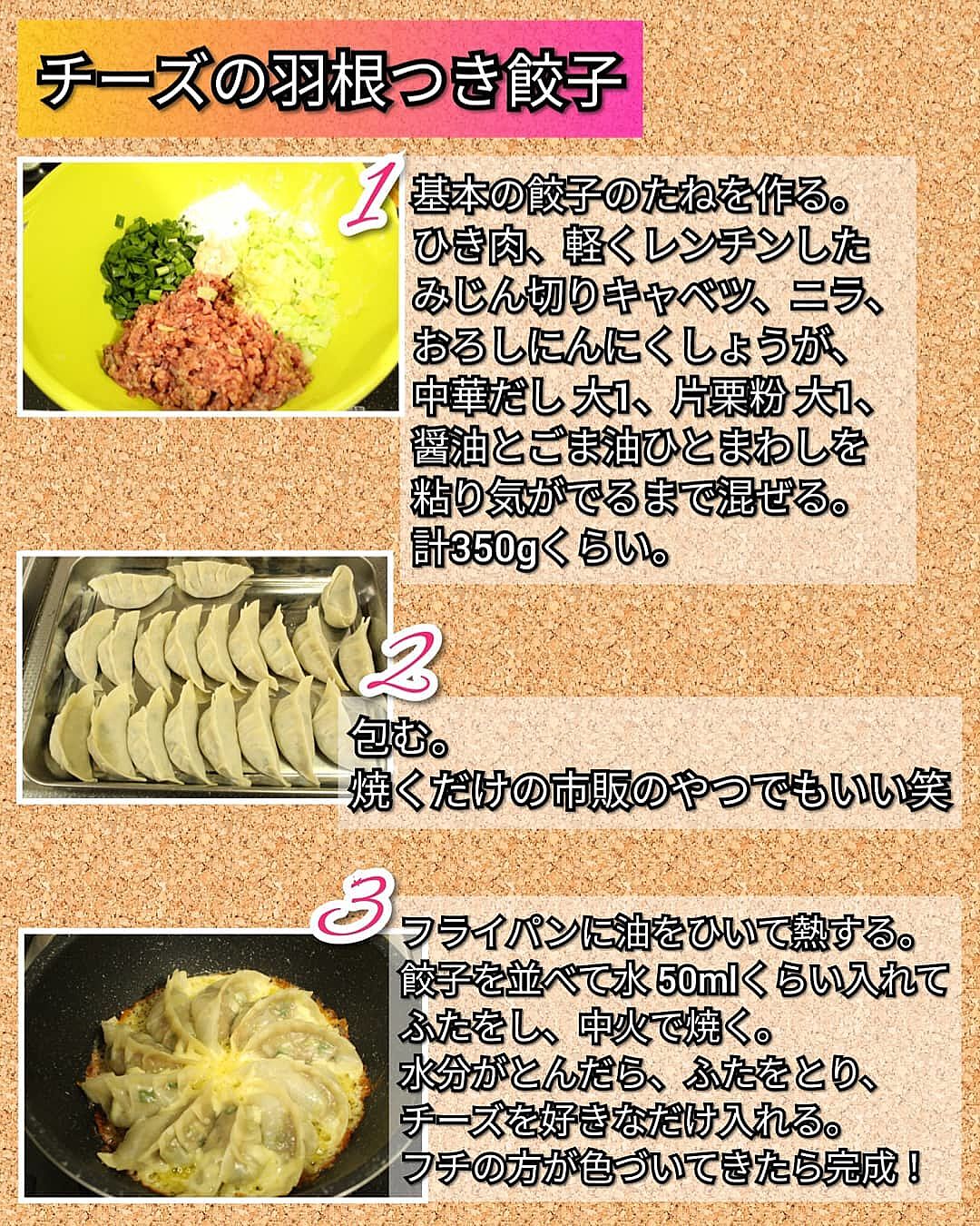 チーズde羽根つき餃子おすすめレシピモランボン。