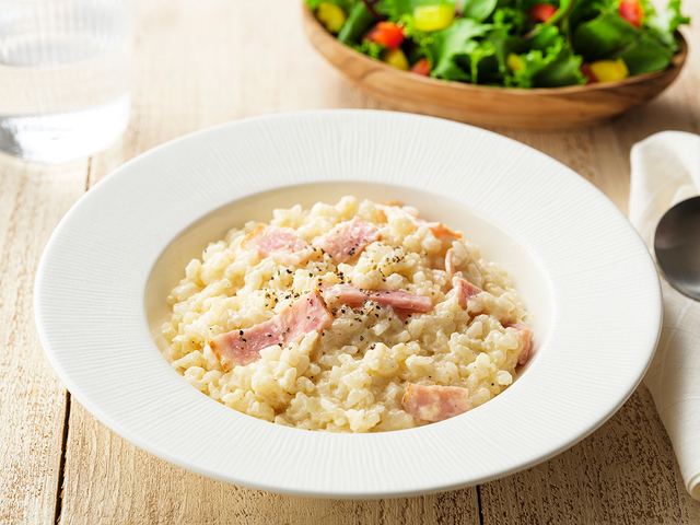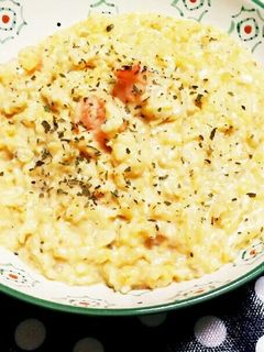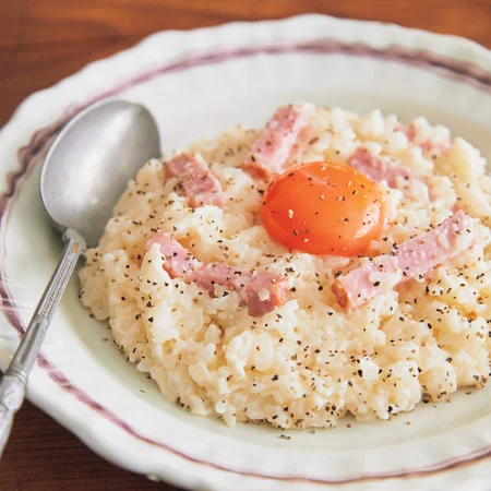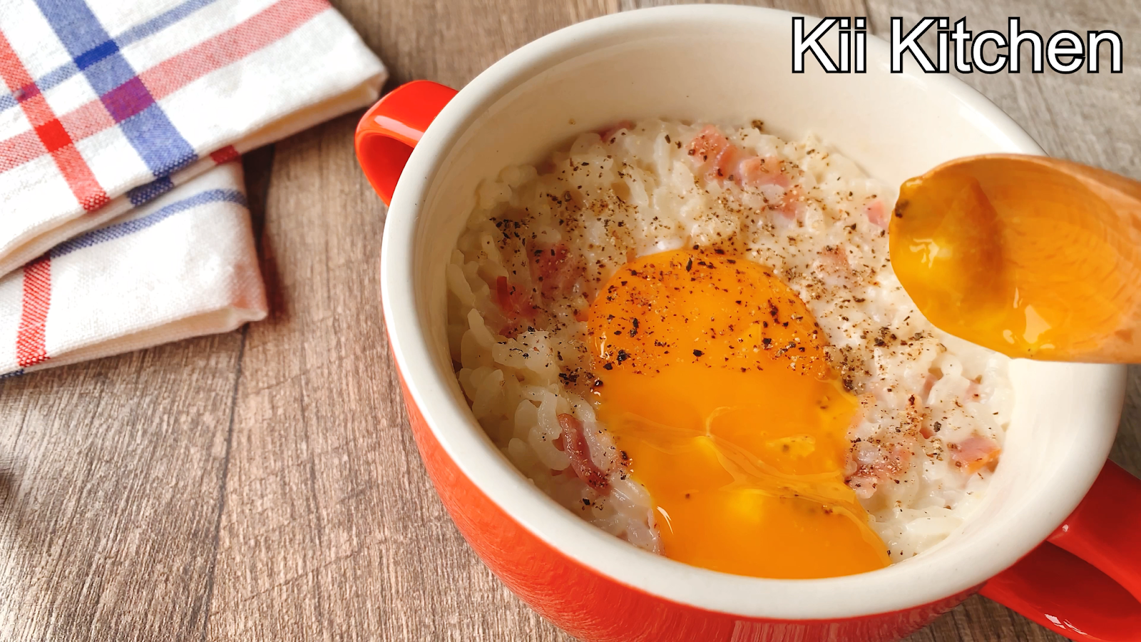 冷やごはん&レンジで簡単!カルボナーラ風リゾット。