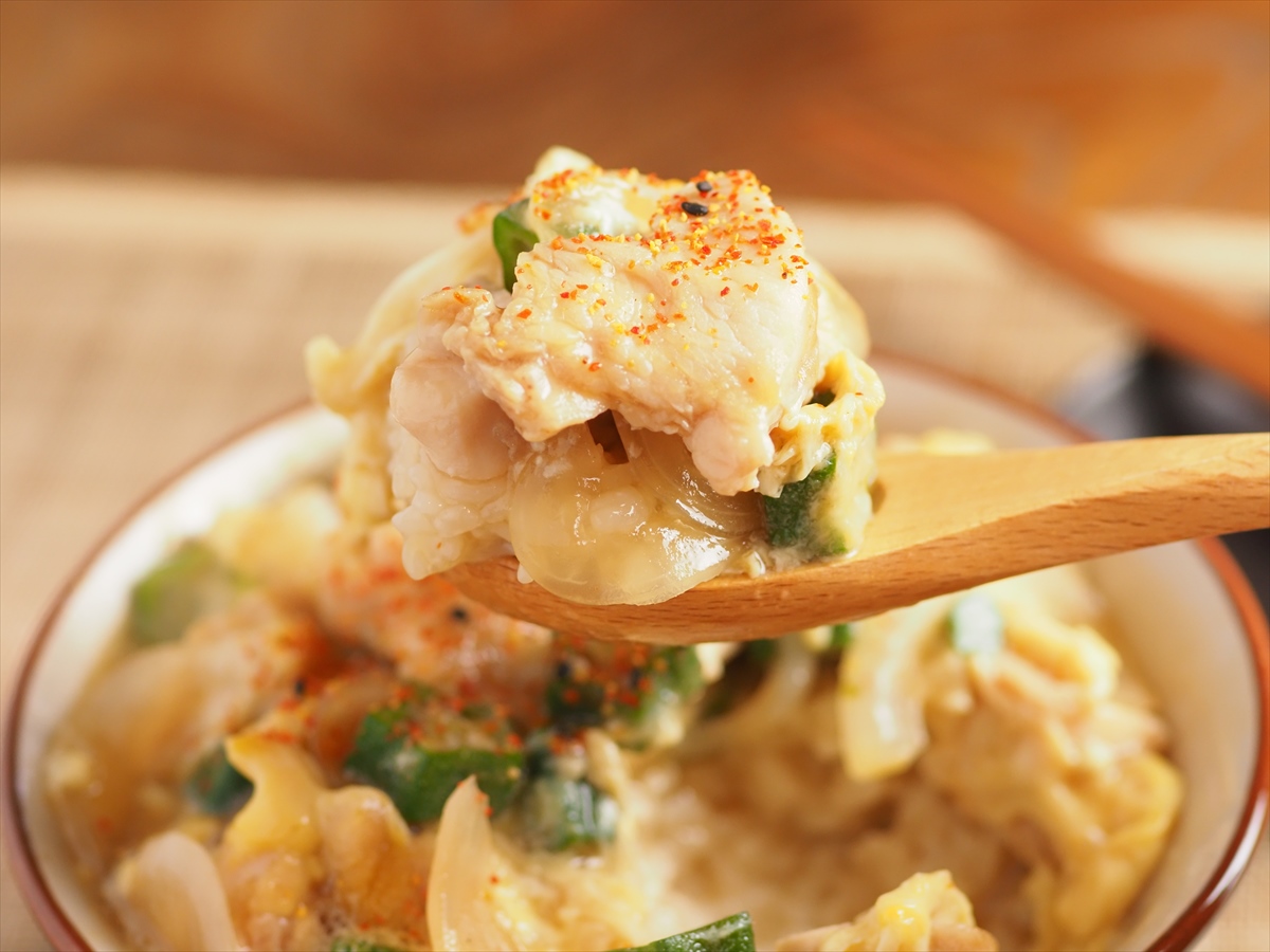 少ない卵でも大満足!「オクラ入りとろとろ親子丼」。