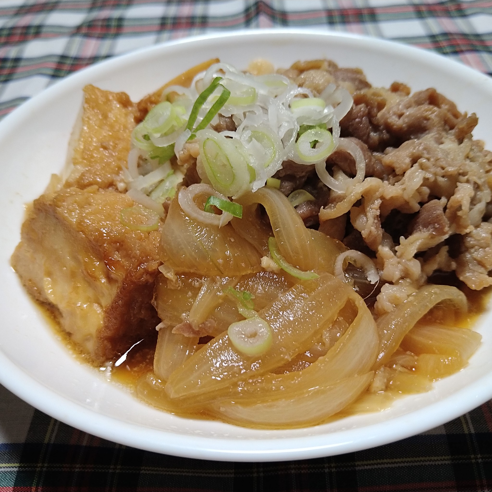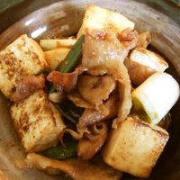 豚の角煮の余ったタレで!すき焼き風焼き豆腐&玉ねぎ。