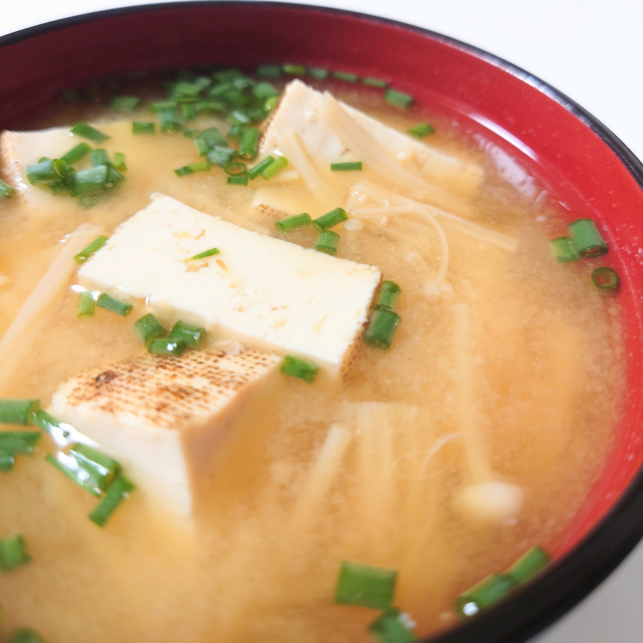 ほっと温まる♪ 焼き豆腐とえのきの味噌汁。