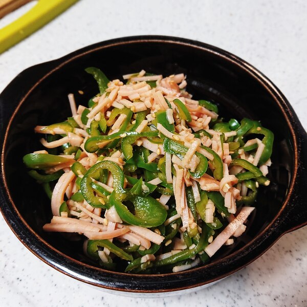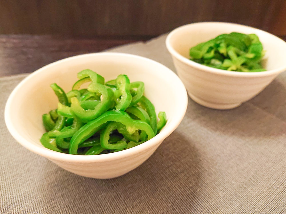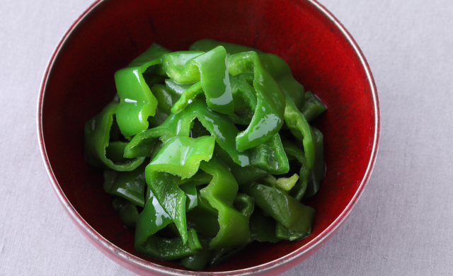 電子レンジであっという間!やみつきピーマンのナムル 副菜。