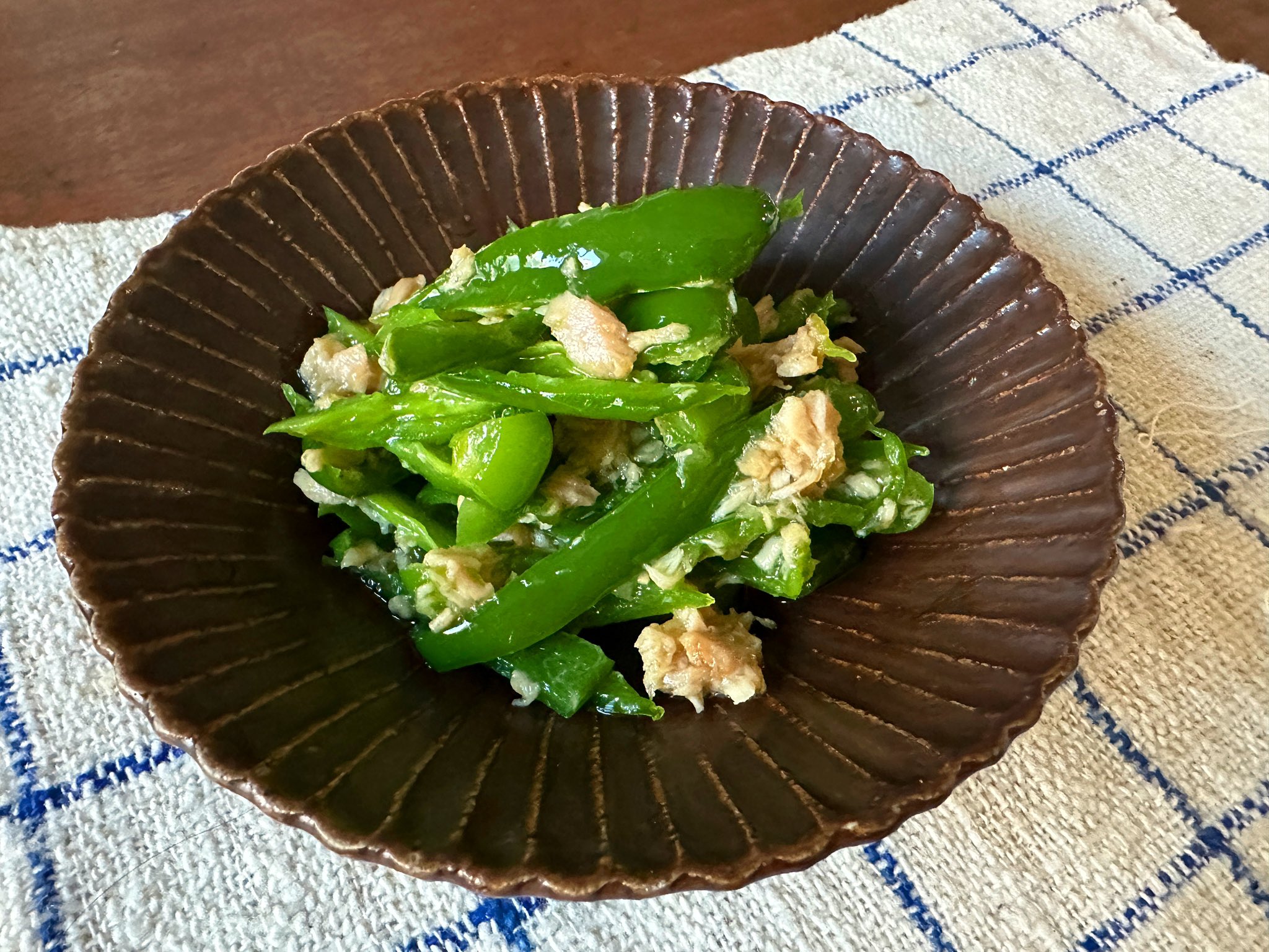 やみつき♡簡単副菜♡ピーマンの天かすツナ合え。