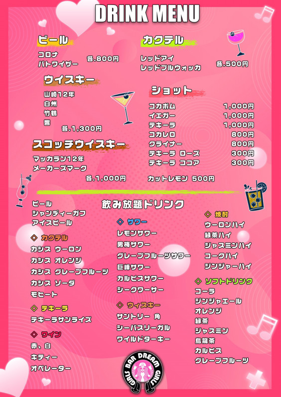 ドリンクメニューのお知らせ -公式サイト BARベティ64。