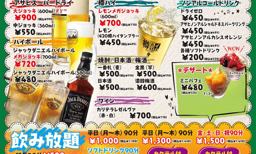 ドリンクメニュードリンク・デザートお料理のご案内甲羅本店みづほ野グループ。