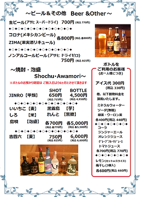 ボトル料金改正のお知らせ - あーえーTOKYO。