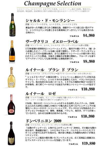 シャンパンメニュー CHAMPAGNE MENU - あーえーTOKYO。